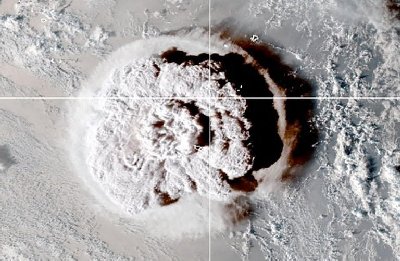 15 januari 2022 exploderar vulkanen, likt en enorm kärnvapenexplosion, som kunde ses ända till satteliter i rymden.