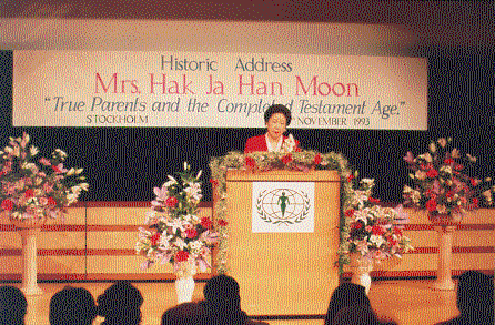 7 sep Hak Ja Han talar i Förenta Nationerna.