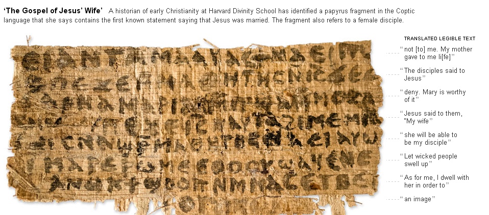 Harvard Divinity School USA funnit ett gammalt papyrus med ord översatta där