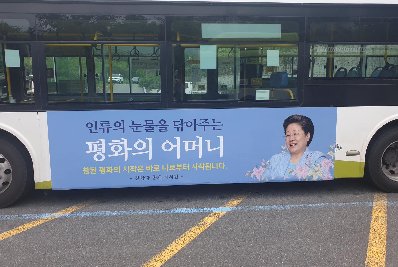 juli 2020 - Annons på bussar i Korea: Fredens Moder (Hak Ja Han),